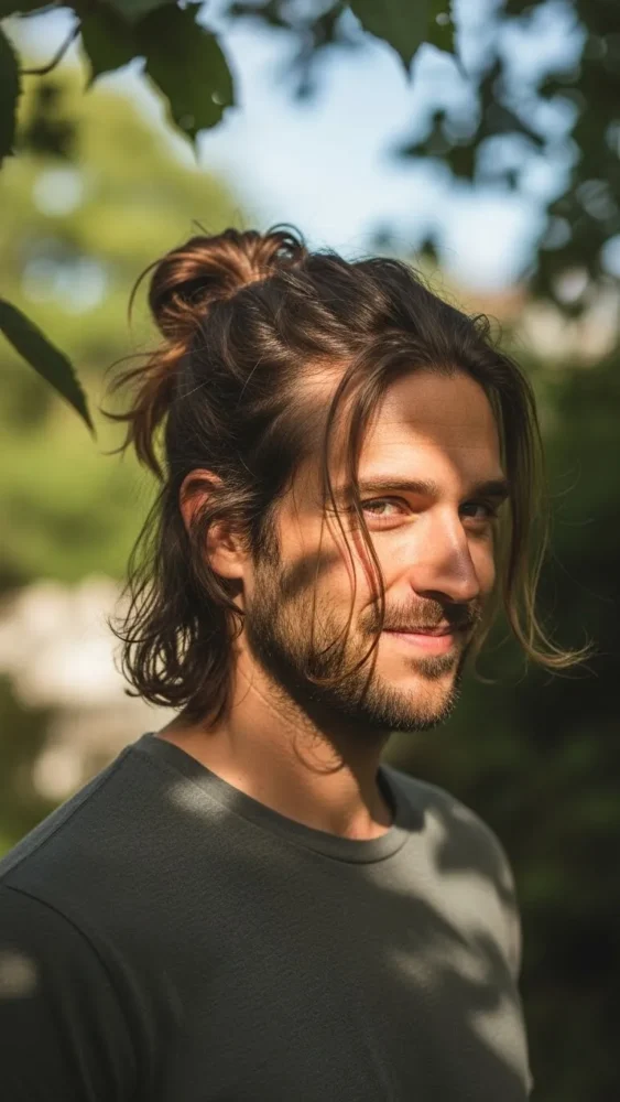 The messy man bun is relaxed, effortless, and stylish without looking overdone.