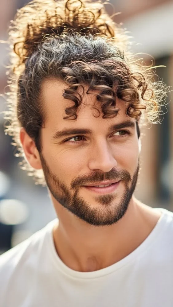 Curly hair adds volume and texture that makes man buns stand out naturally.