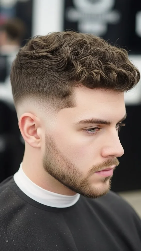 Curly hair shines in textured crop cuts. Keeping the sides faded allows curls on top to pop without looking messy. It’s low effort but high impact.
