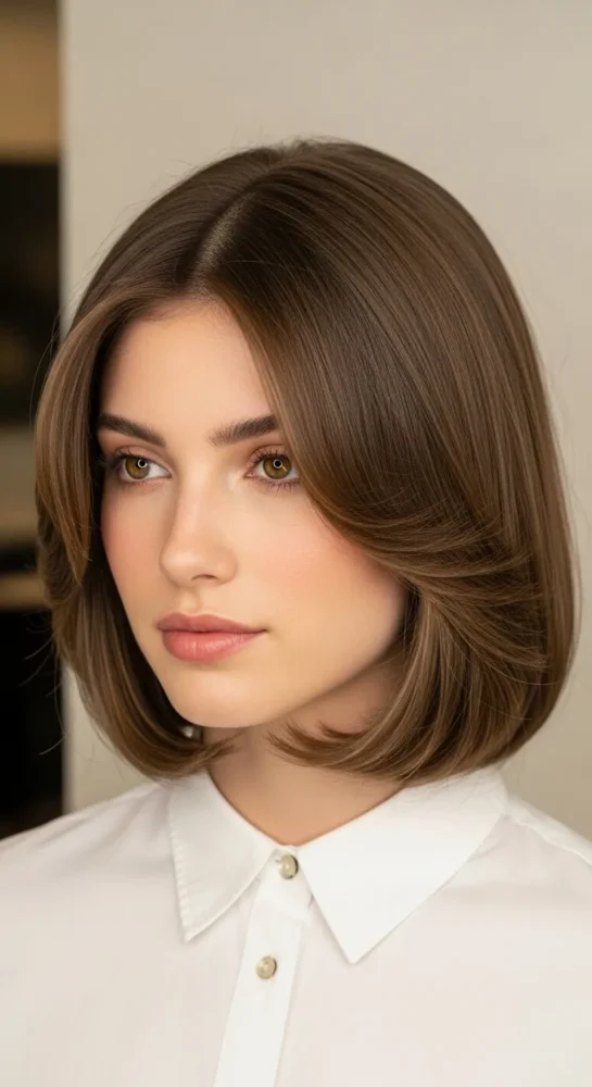 A timeless option that never feels outdated. This cut sits right at the chin and uses soft layers to prevent heaviness around the jawline. It’s especially flattering for fine to medium hair that needs movement without losing structure.