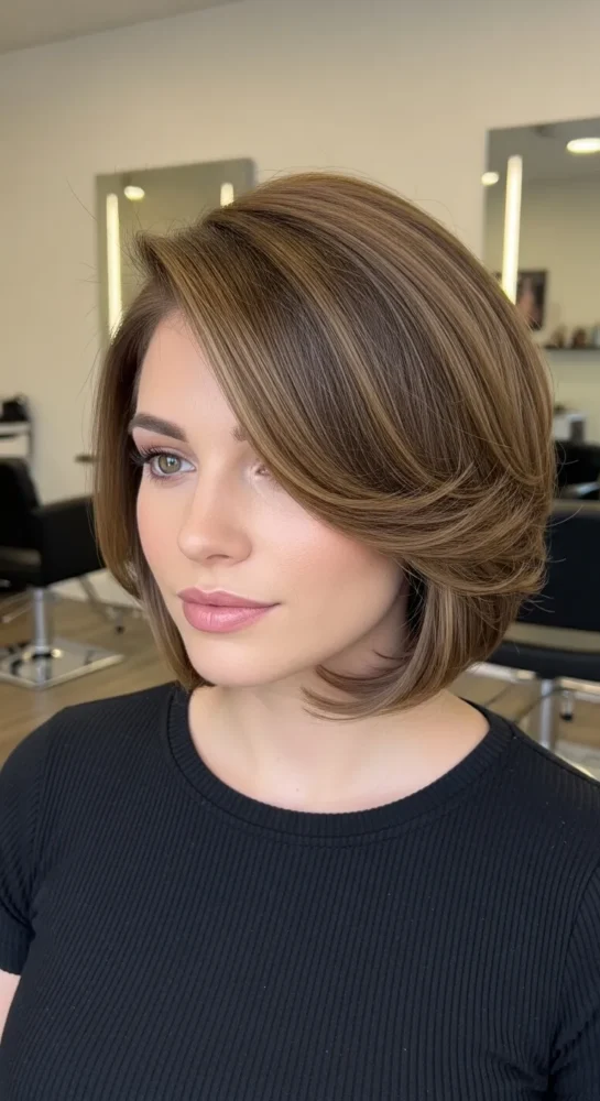 A deep side part instantly adds drama and volume. Paired with layers, this cut creates a flattering asymmetry that draws attention to the eyes and cheekbones.