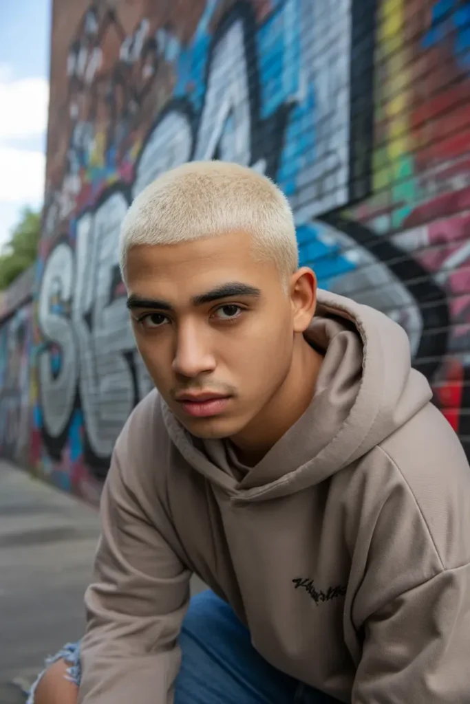 A bleached buzz cut is for the truly bold. Going platinum or icy blonde instantly makes the style stand out and adds an edgy, fashion-forward feel.