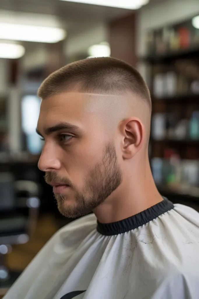 The contrast between the faded sides and short top adds dimension and edge. It’s a great choice for men who want a clean and bold upgrade to a traditional buzz cut.