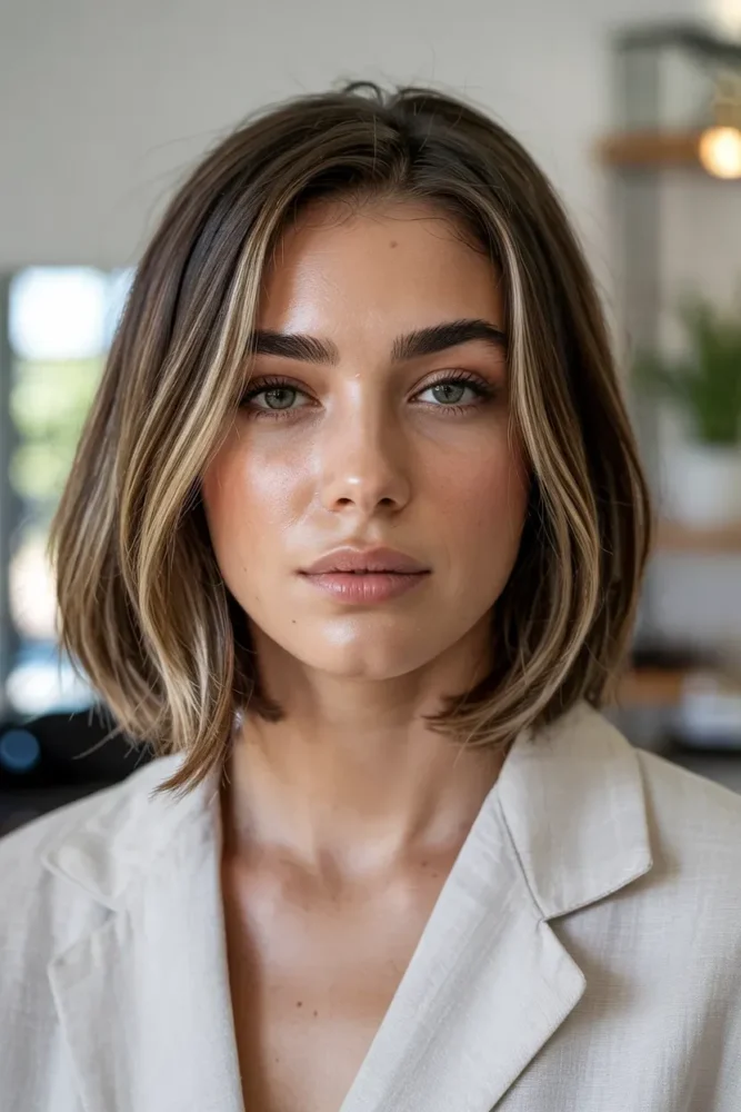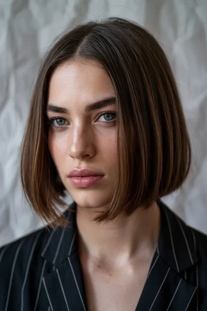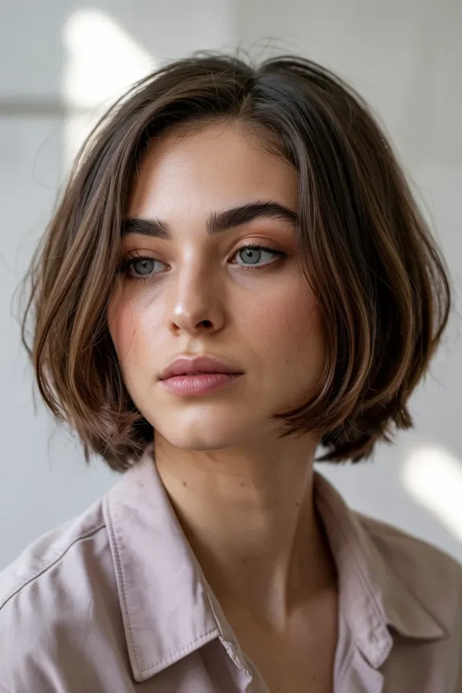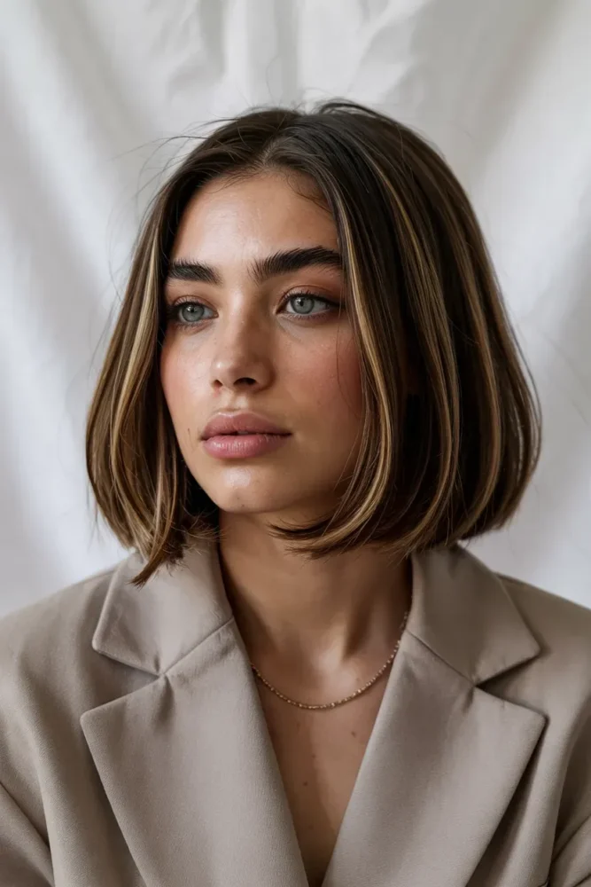 This timeless bob hits right at the chin and uses soft layers to avoid a blunt, flat look.