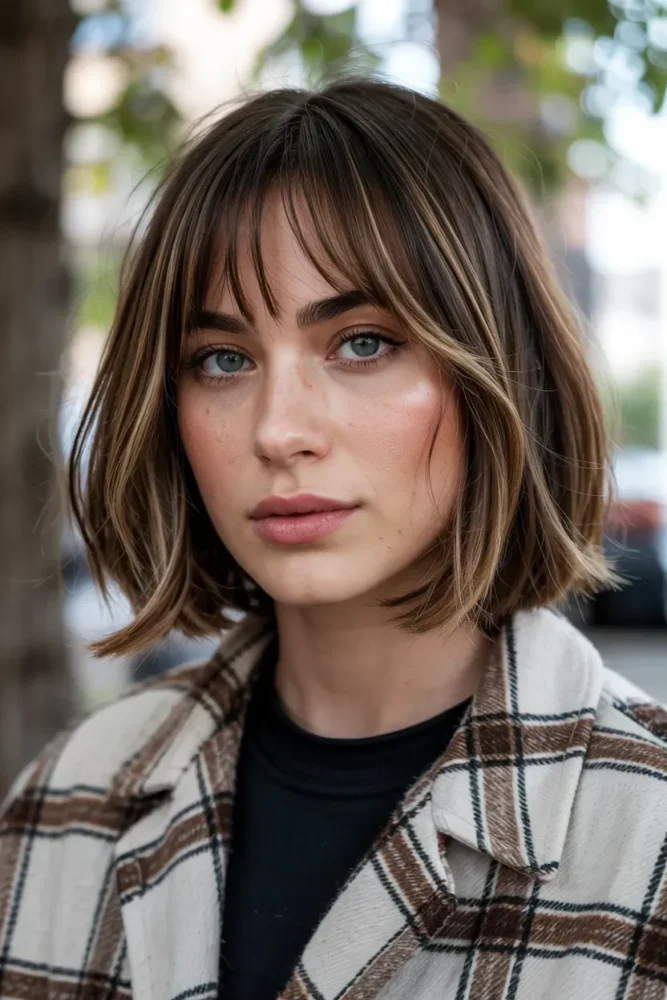 Side-swept bangs add softness and balance, making this style flattering and easy to wear. It’s a Pinterest favorite for everyday elegance.