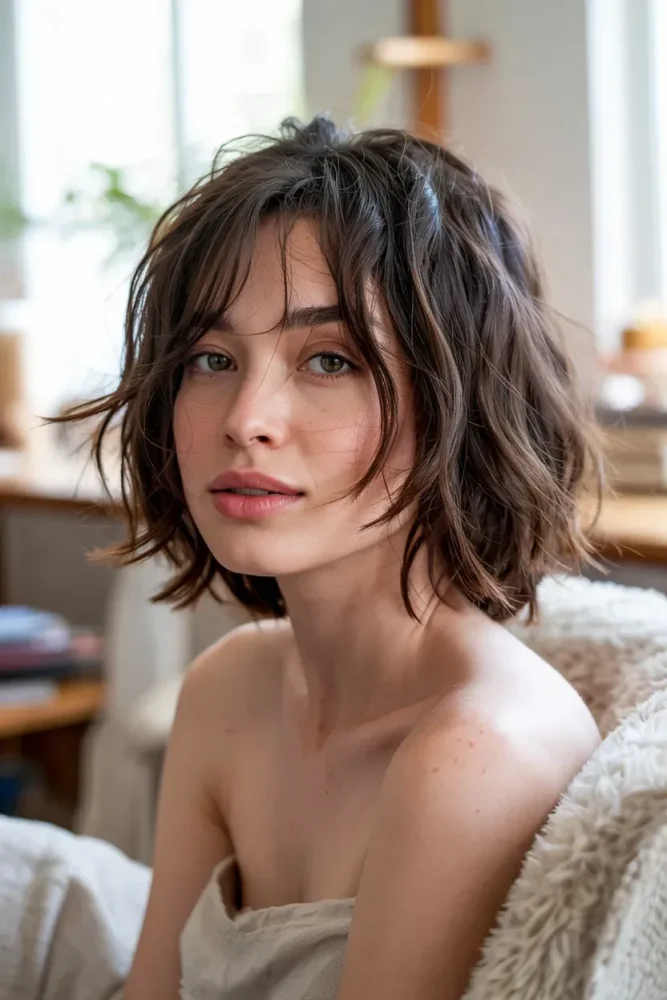 This carefree, slightly undone bob is perfect for women who love low-maintenance hair. Choppy layers create texture that looks good even air-dried.