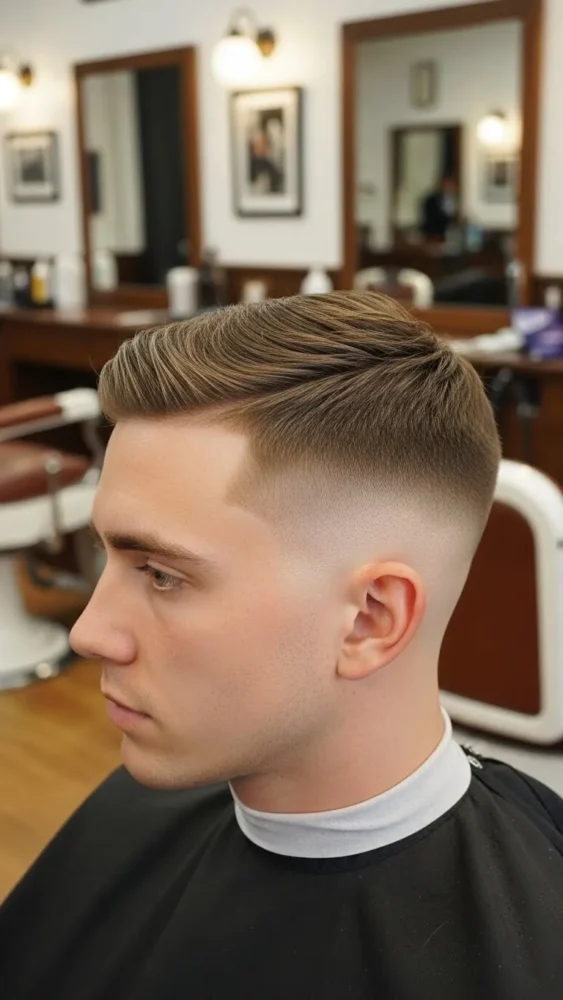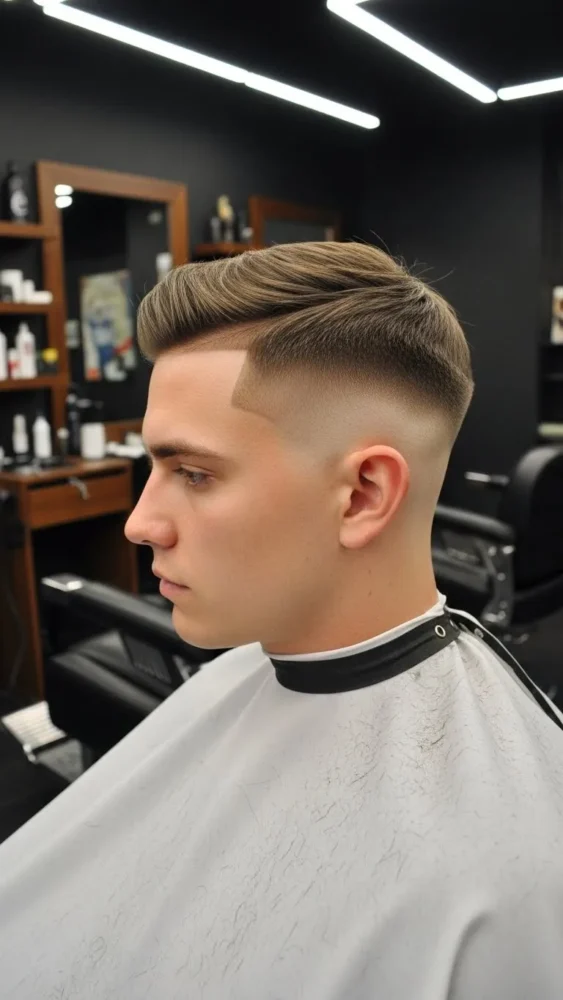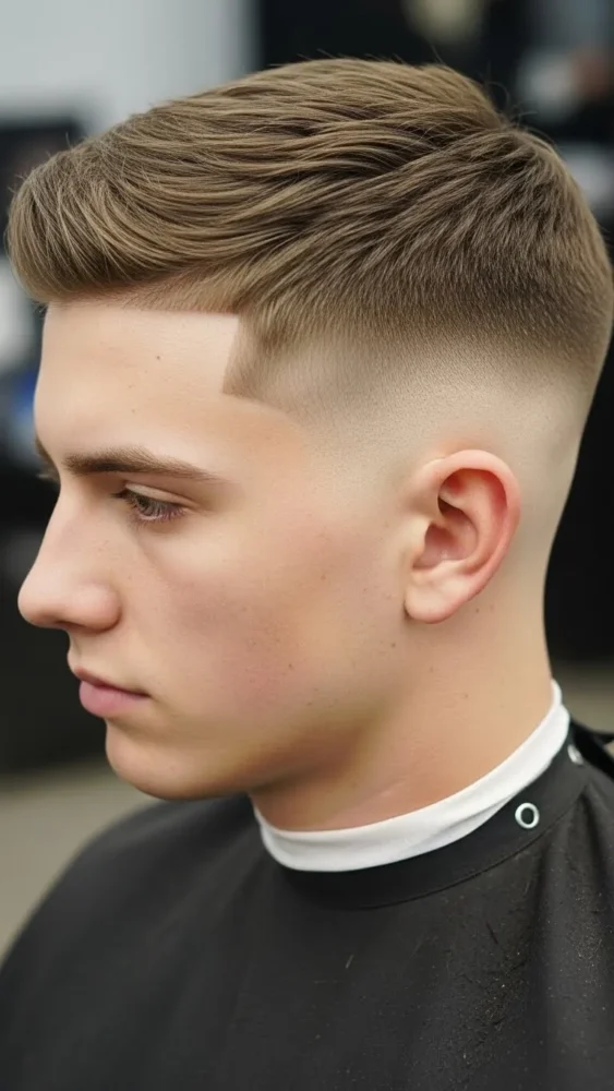 This is the boldest option on the list. The high fade creates strong contrast, making the top stand out.