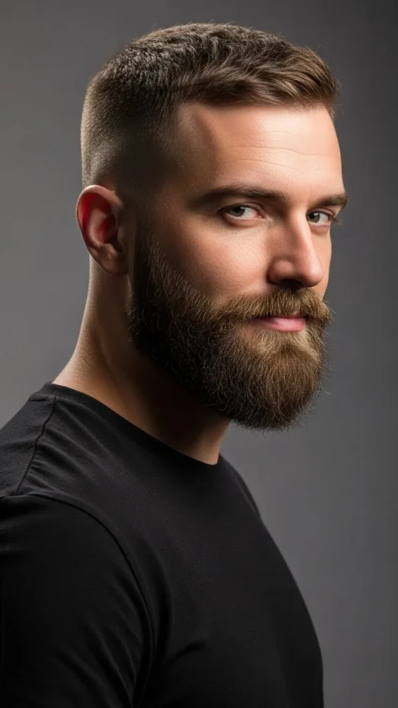 Pairing a crew cut with a well-groomed beard creates instant balance. The clean haircut sharpens the face, while the beard adds depth and masculinity.