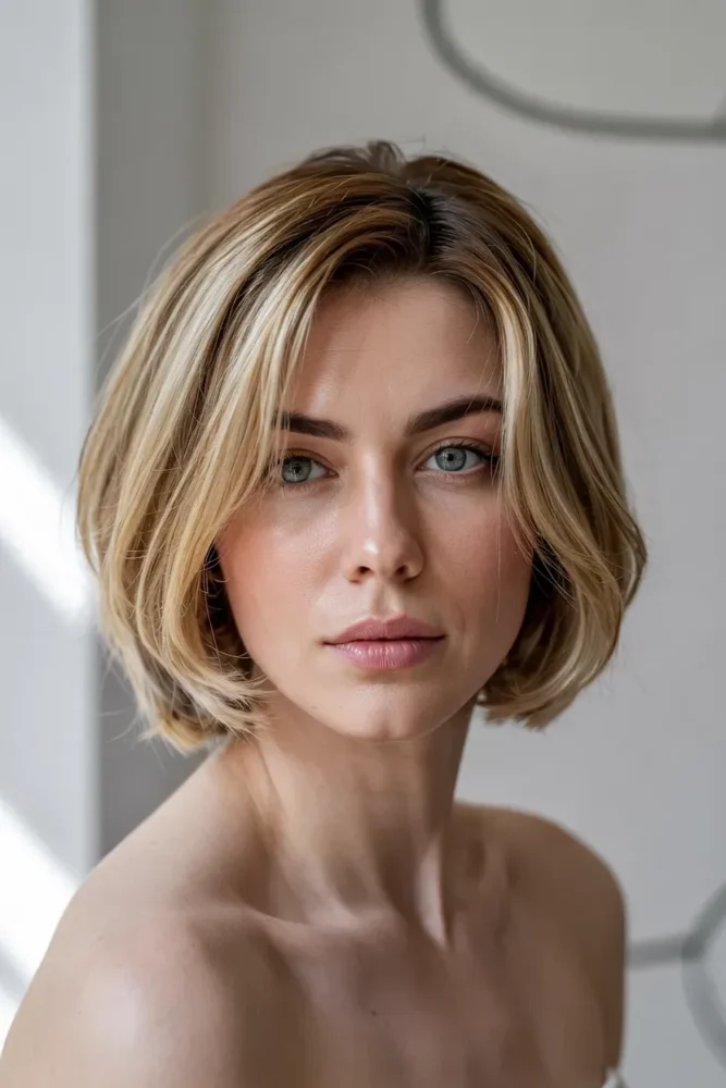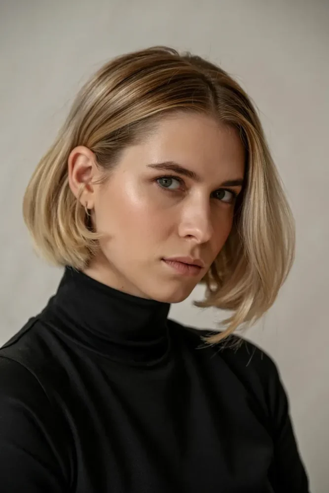 Simple doesn’t mean boring. This clean, minimal cut relies on precise layering and natural blonde tones to create quiet confidence and soft volume without heavy styling.