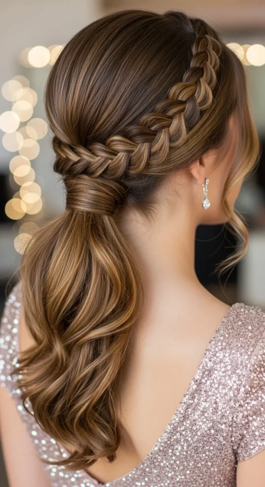 A low ponytail instantly looks elevated when you add a simple braid. You can braid one side or wrap a braid around the base. It’s stylish, secure, and perfect if you want something trendy yet practical.