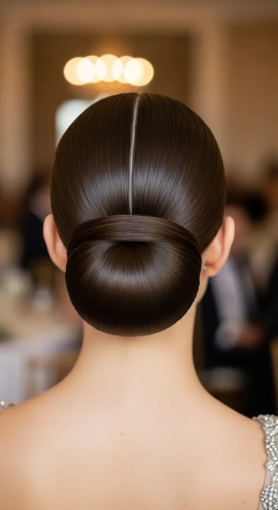 A low bun with a clean center part looks modern and timeless. Perfect for minimalist dresses, this style keeps hair off your face and highlights your makeup and earrings. Use hair gel and a fine comb for a smooth finish.