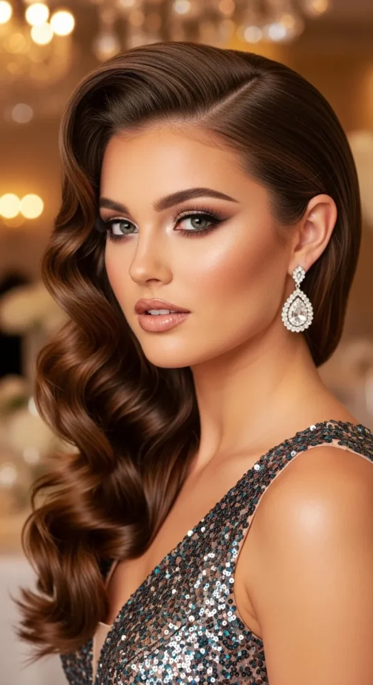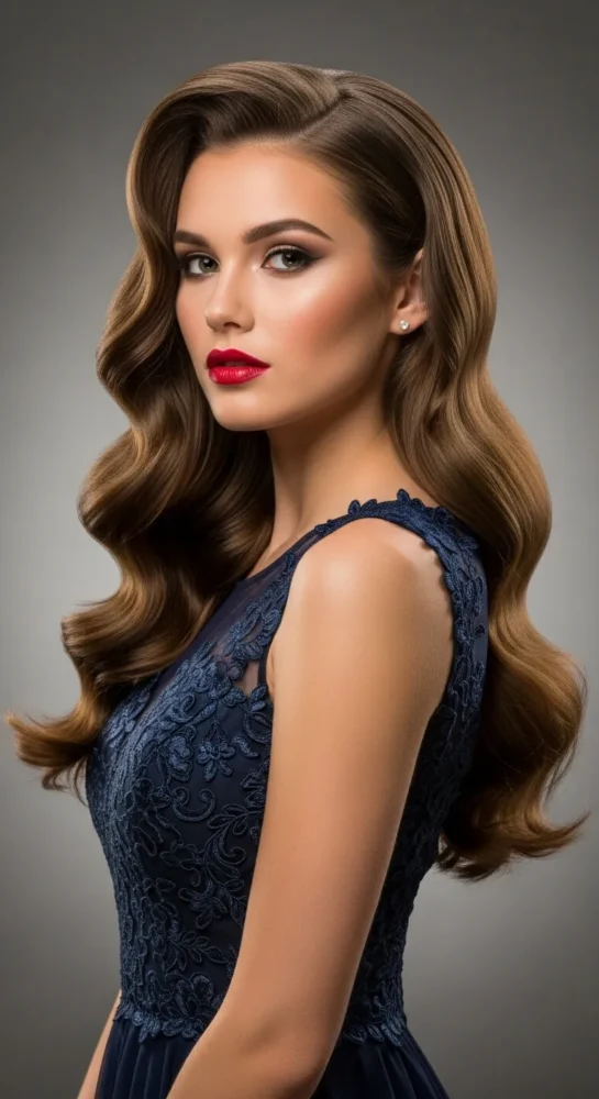 Classic, glossy waves instantly give a red-carpet feel. This style works best for medium to long hair and looks amazing in photos. Use a curling iron, brush waves out gently, and finish with shine spray for a smooth, expensive finish.