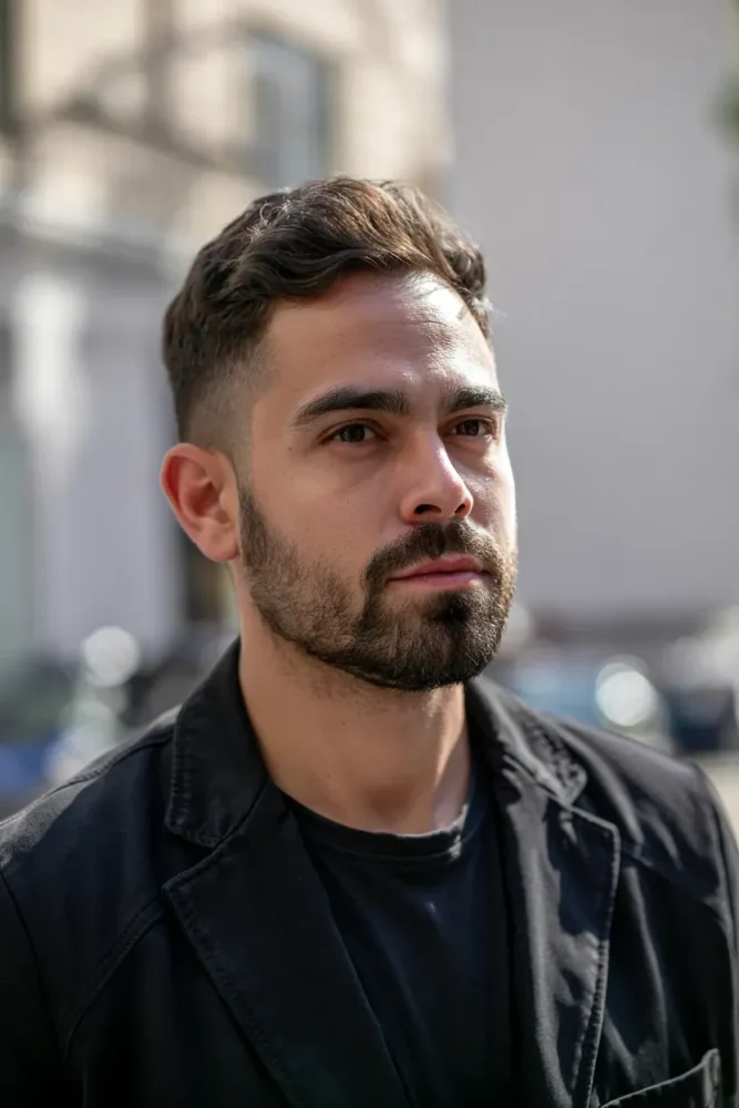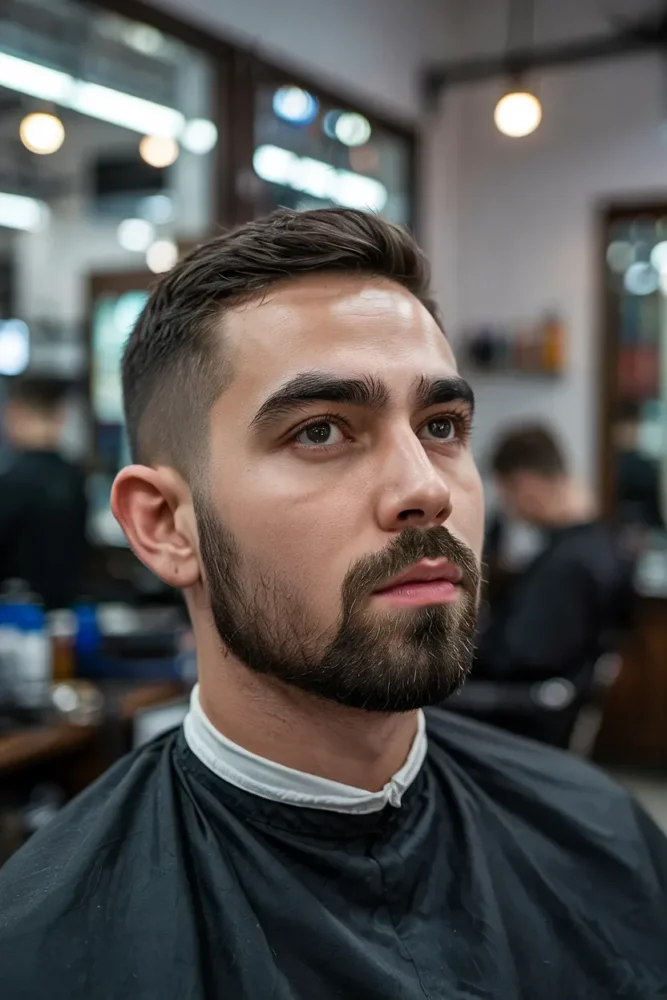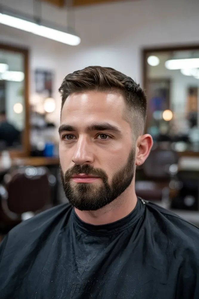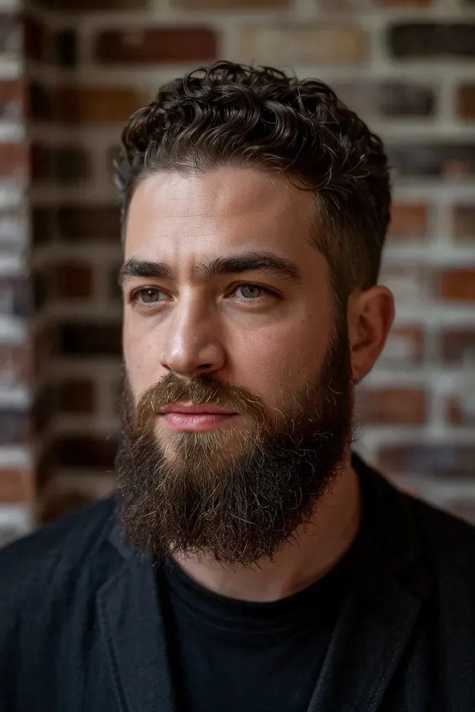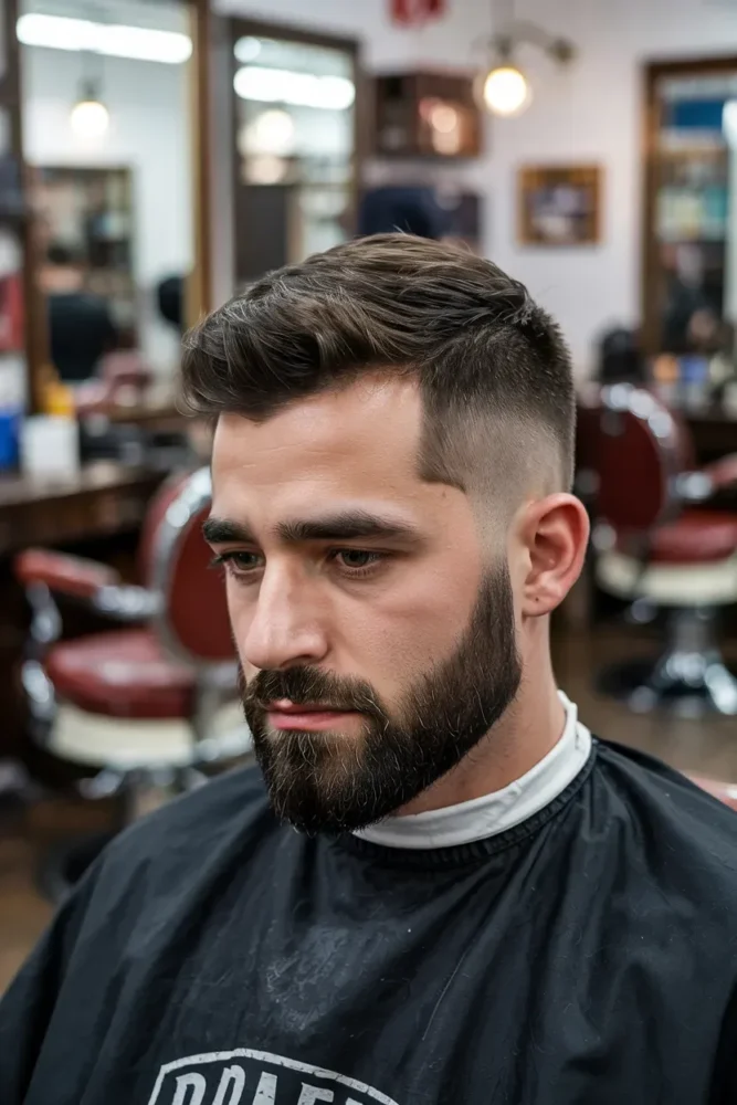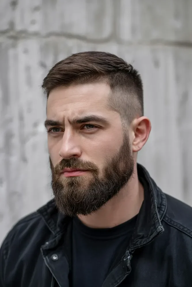This style keeps the beard thick while fading the sides for structure. It’s ideal if you don’t want to sacrifice fullness.