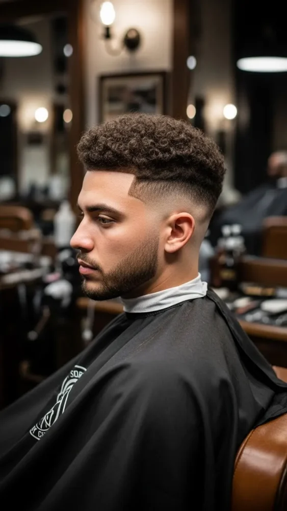 Bold and confident, the curly high fade creates a strong contrast between the sides and top. It highlights facial features and adds instant sharpness. This style performs exceptionally well on Pinterest saves.