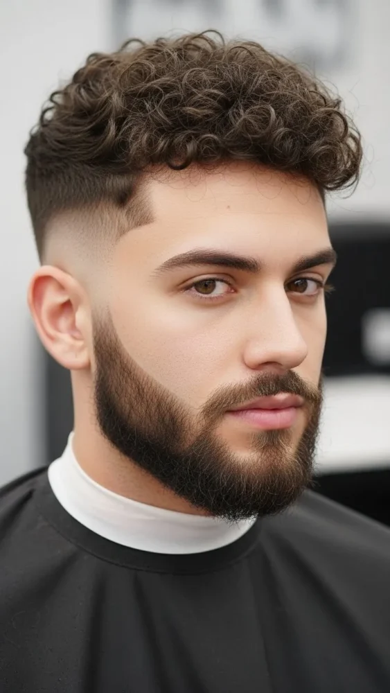 15. Curly Fade with Beard