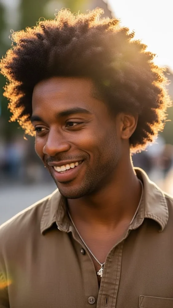 Letting curls grow naturally with minimal shaping creates a strong, authentic look. This Hair Men Haircut focuses on health and volume over sharp lines.