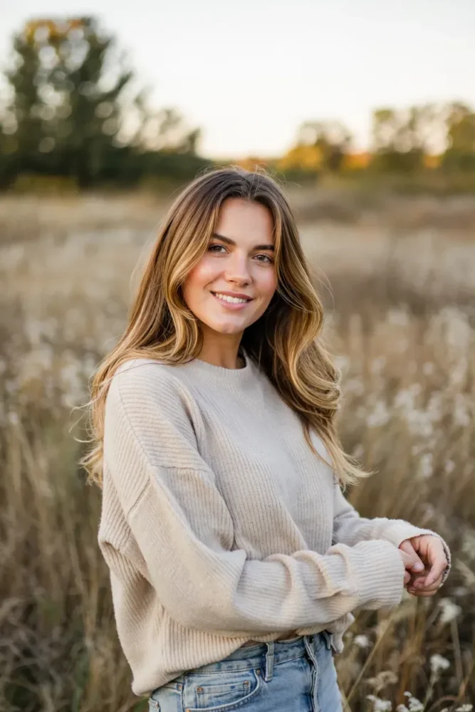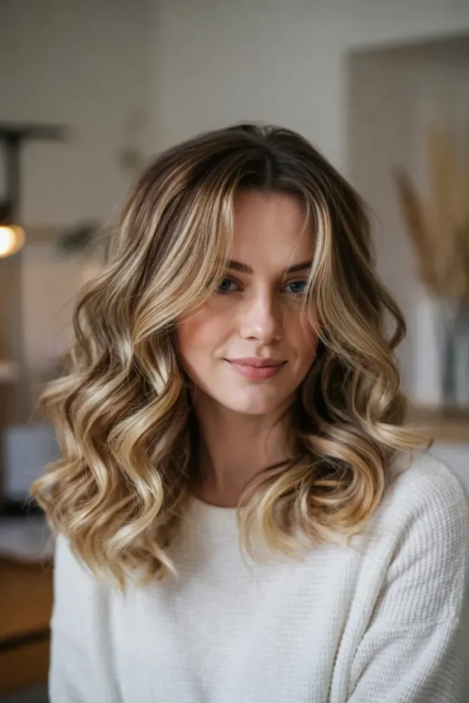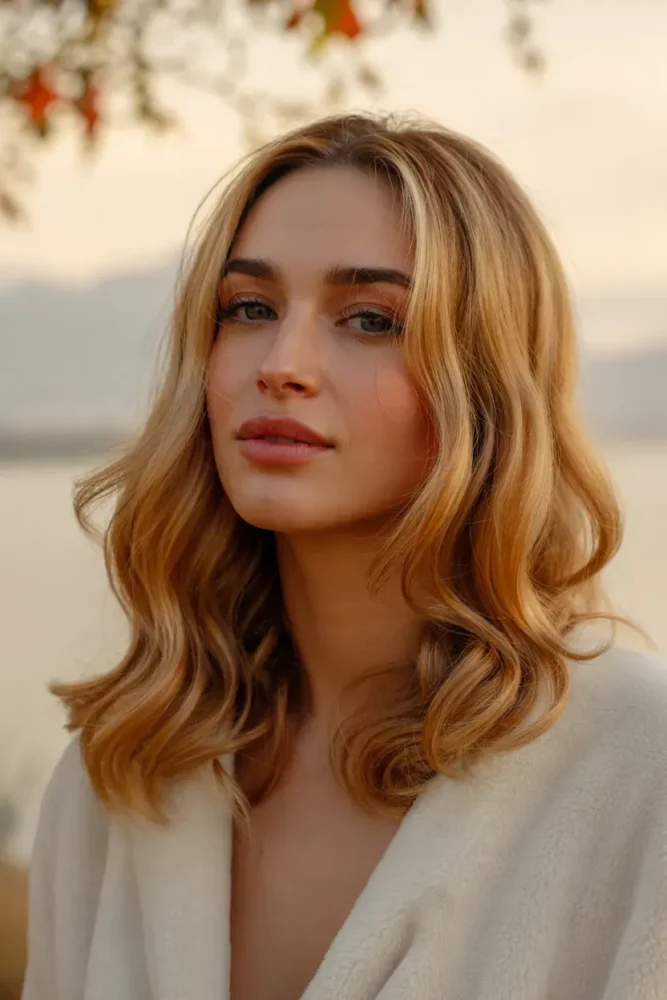 It brightens the face without looking brassy and works beautifully with layered or wavy hairstyles.