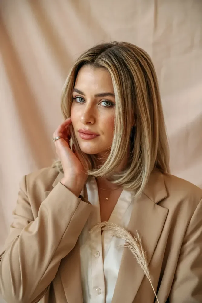 Warm champagne blonde adds elegance without going too light or dark.