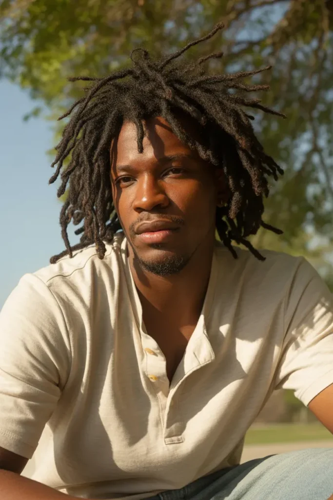 This style works especially well with medium to long locs and suits men who enjoy a relaxed yet trendy appearance.