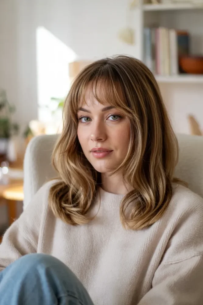 Curtain bangs paired with a medium-length cut create instant style without high commitment. They blend easily and grow out well, making them ideal for busy moms who want something fresh but flexible.