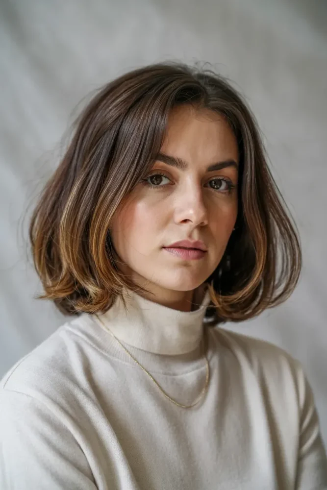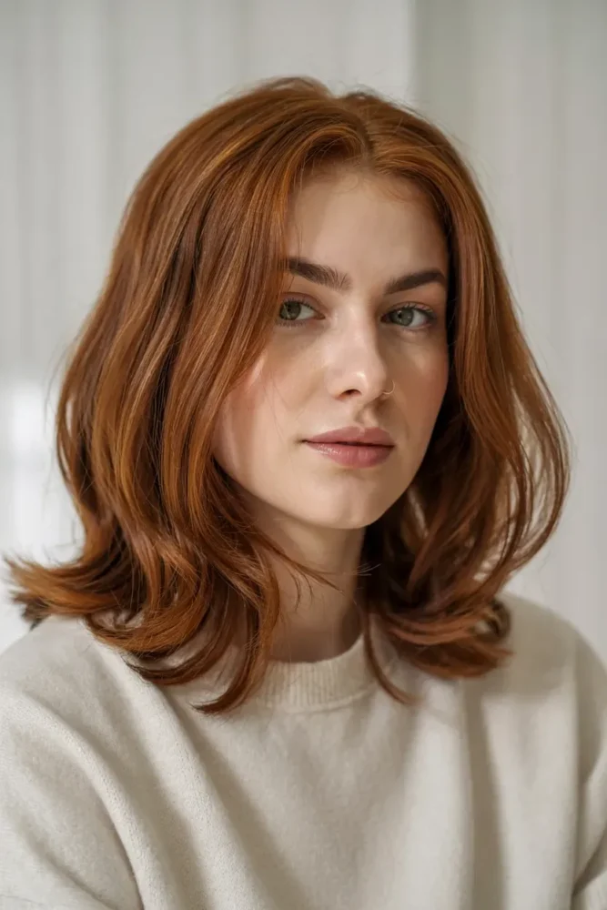 Round face haircuts mid length benefit from subtle angles and layers. This style adds vertical length visually while keeping hair full and healthy-looking. It’s practical and flattering for everyday wear.