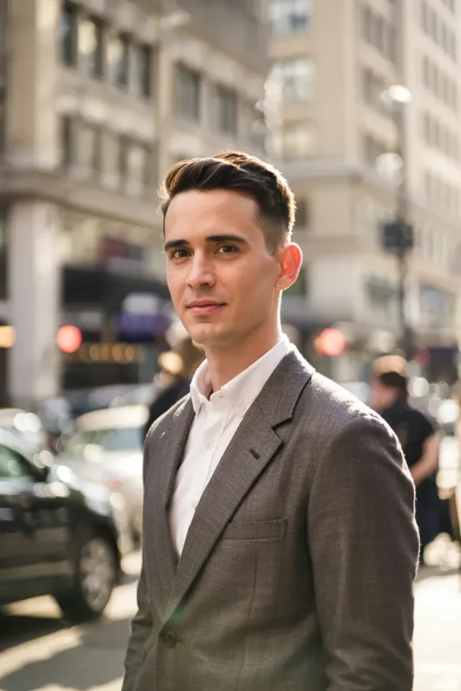 Polished but relaxed, the Ivy League haircut looks intentional without daily styling. Ideal for men who want sharp travel photos.