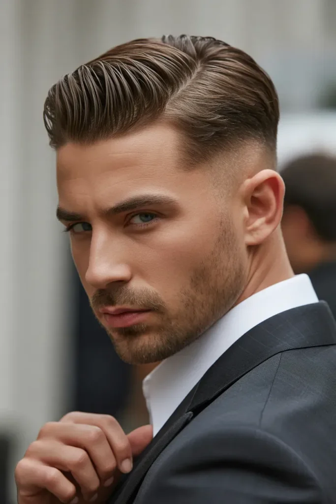 A side part fade feels timeless, but soft highlights modernize it instantly.