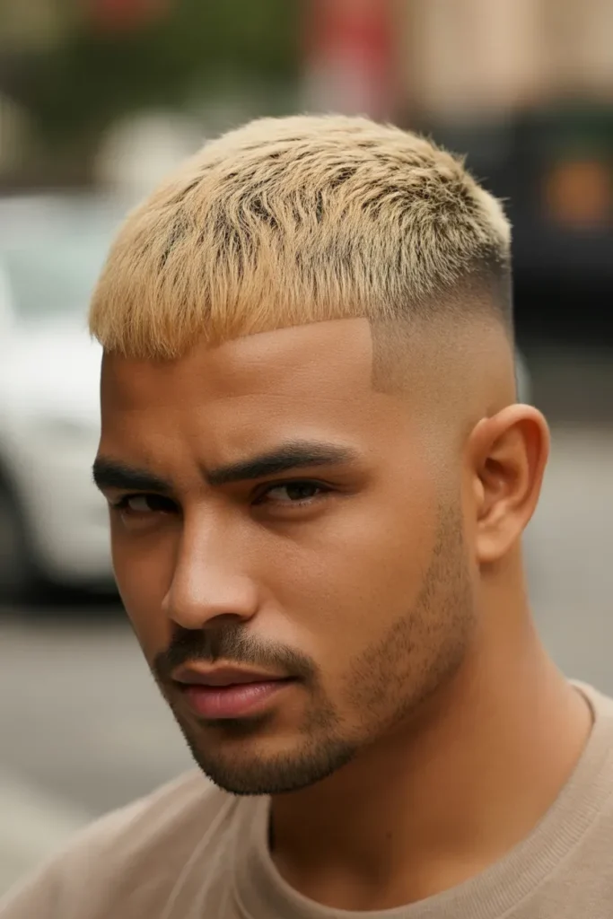 This combination suits confident men who enjoy standing out while keeping the fade clean, structured, and wearable for everyday life.