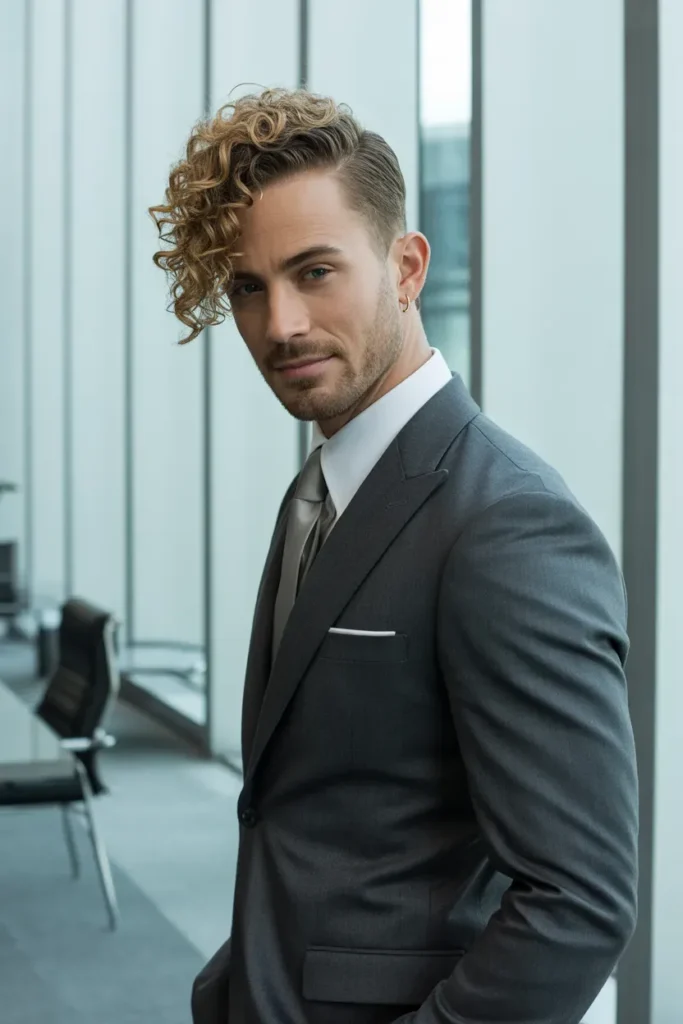 This haircut is ideal for special occasions or men who enjoy dressing sharp while letting their curls enhance the overall sophistication of the look.