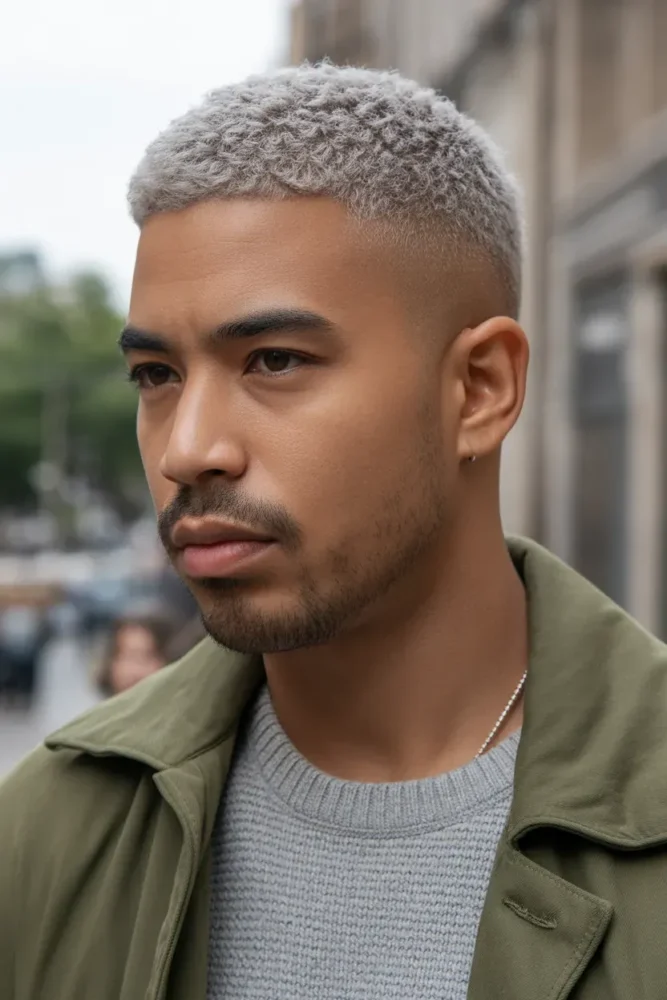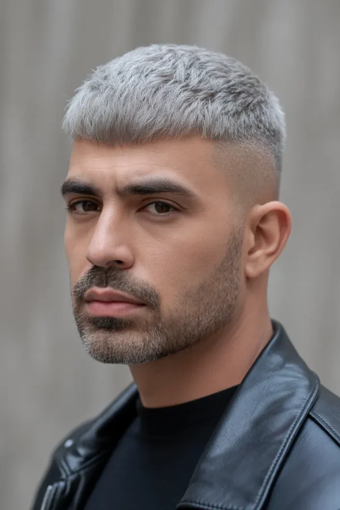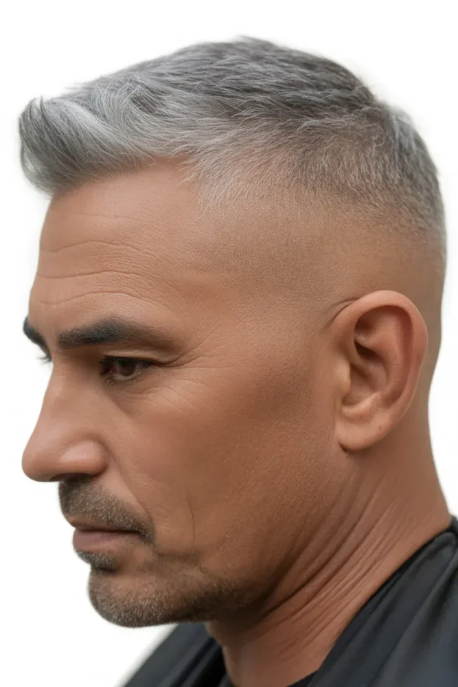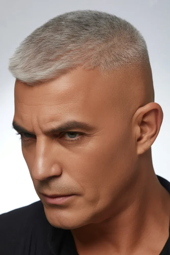 A grey buzz cut proves that simplicity can be powerful.