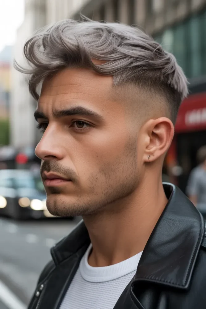 The grey undercut is edgy yet refined, offering contrast that enhances natural silver tones.