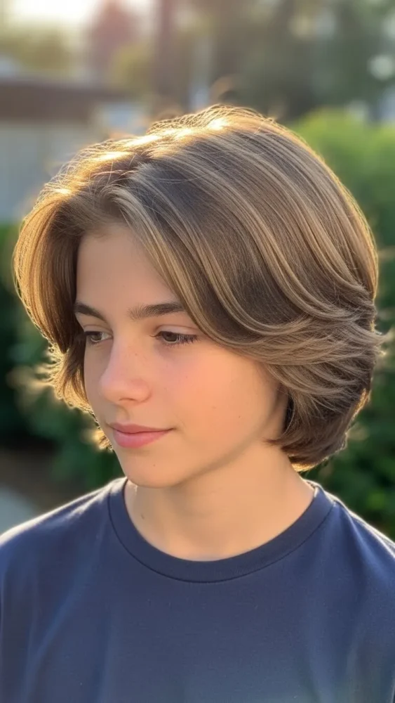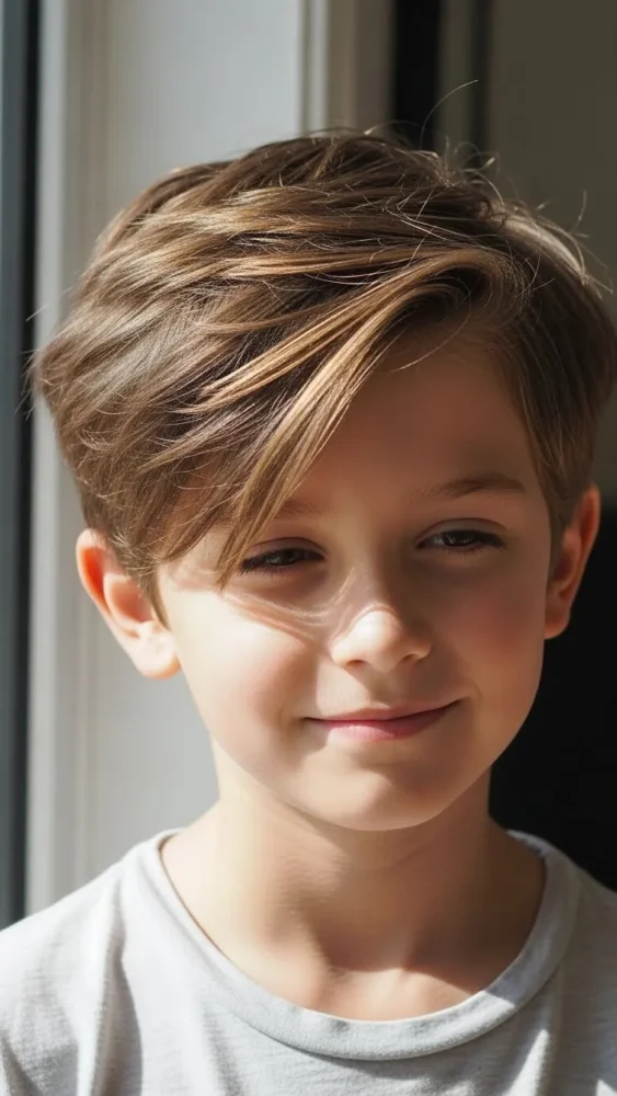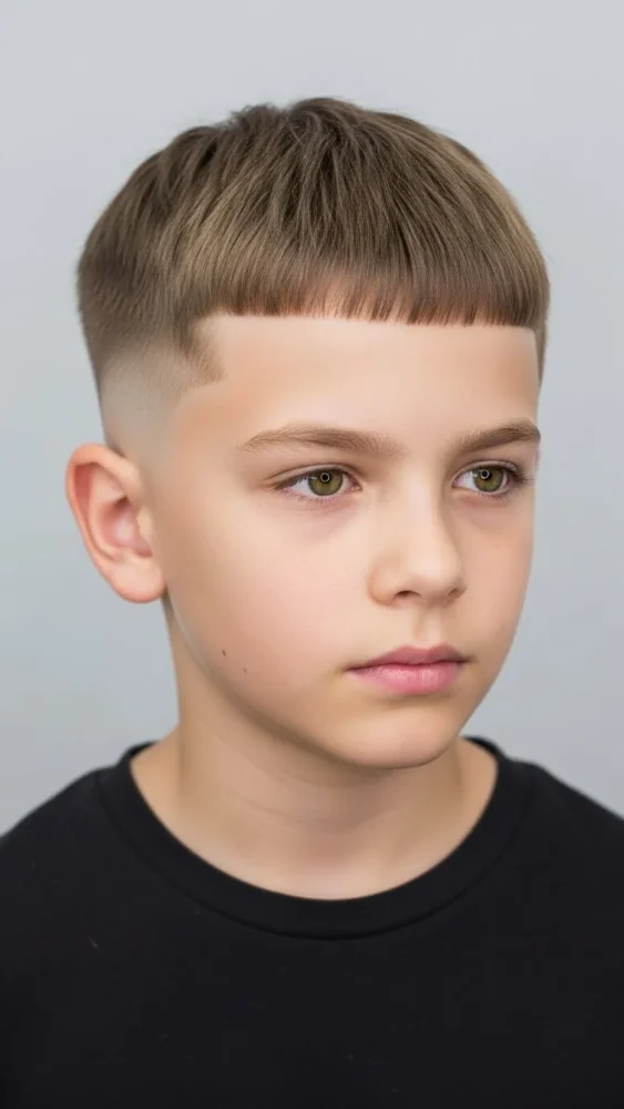 Featuring a short fringe and clean sides, the Caesar cut is perfect for boys who prefer hair off their forehead while maintaining a stylish edge.