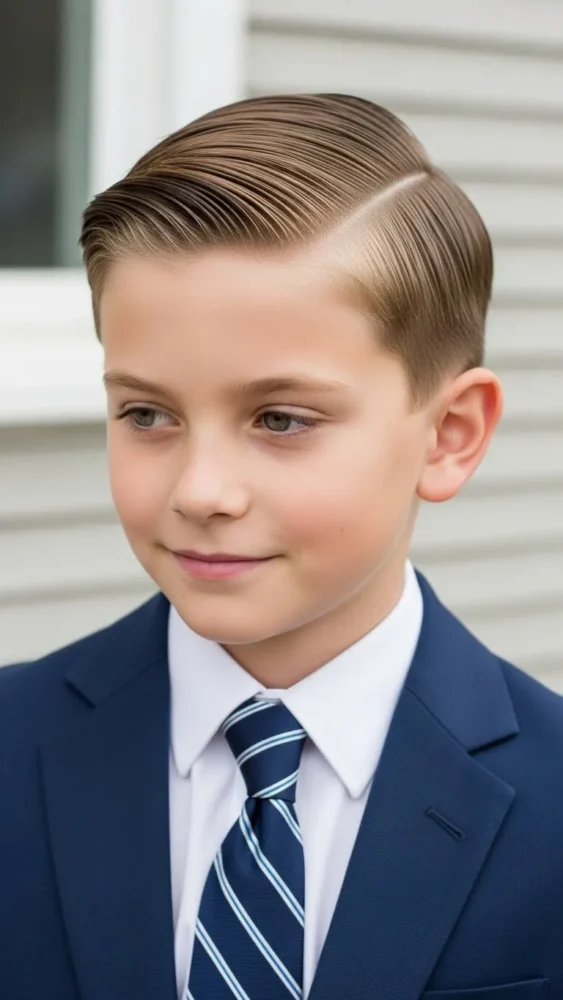 A softer, child-friendly comb over that stays neat without looking stiff.