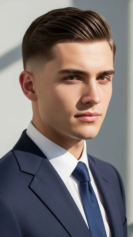 This timeless haircut keeps the sides gradually shorter while leaving a neat, balanced top.