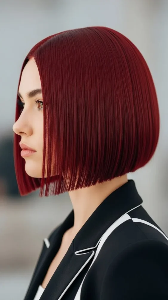 A bob haircut paired with cherry red hair feels modern and fresh.
