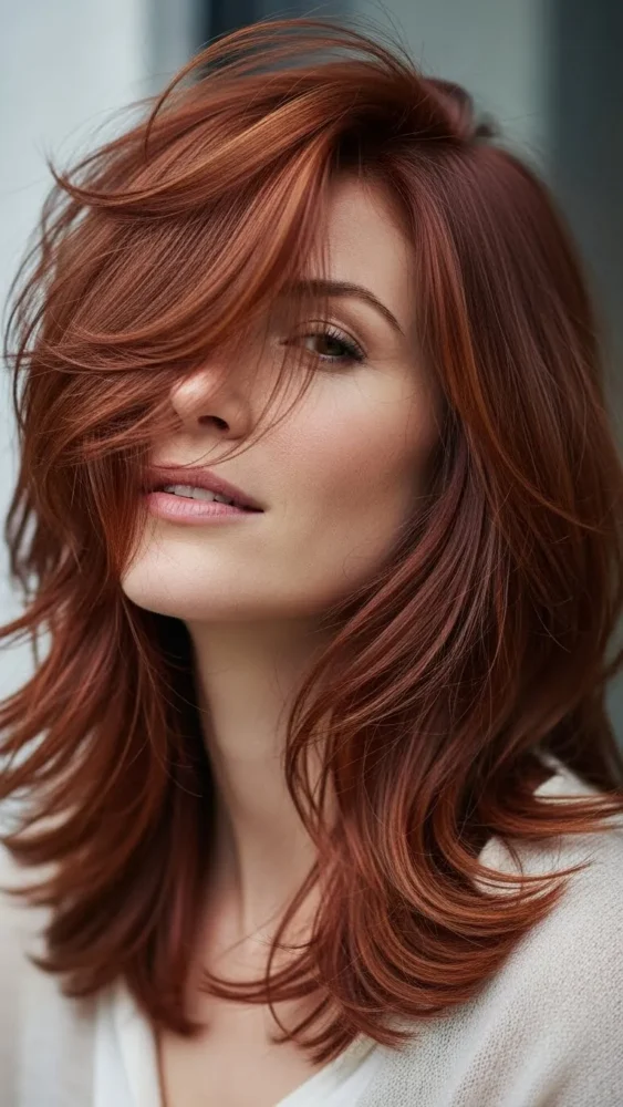 Layers add movement, preventing cherry red hair from looking flat. This is a great option if you want volume without heavy styling.