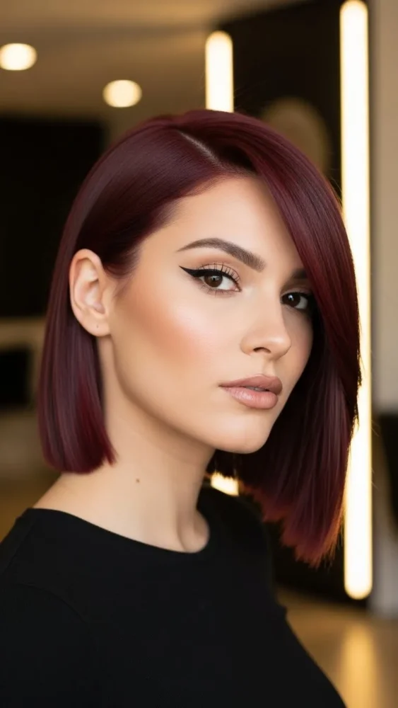 This deeper version leans slightly toward burgundy, giving cherry red hair a more mature, polished vibe.