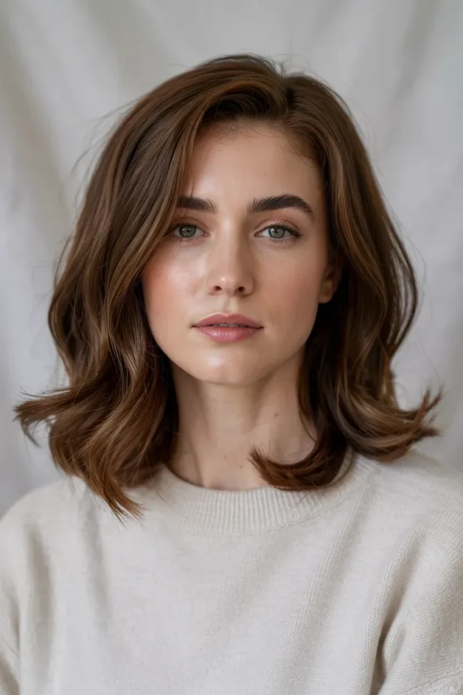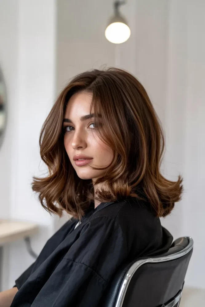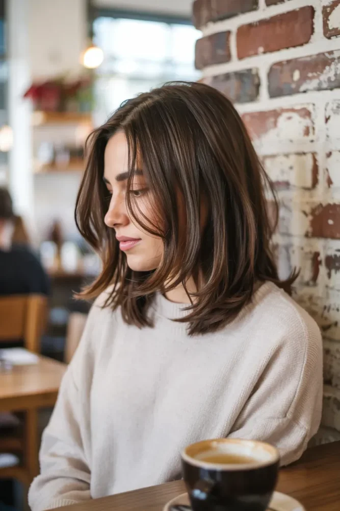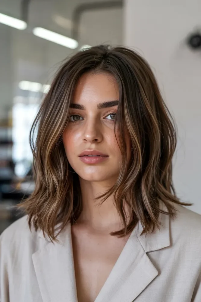 The layered lob sits just above or below the shoulders, offering structure with softness. It’s one of the most pinned styles because it’s flattering, modern, and easy to style.