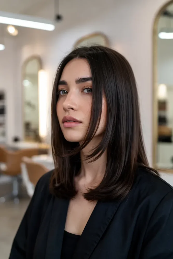 A sleek layered cut offers a clean, modern look. It’s ideal for women who prefer minimal styling and sharp lines while still enjoying subtle movement from layers.