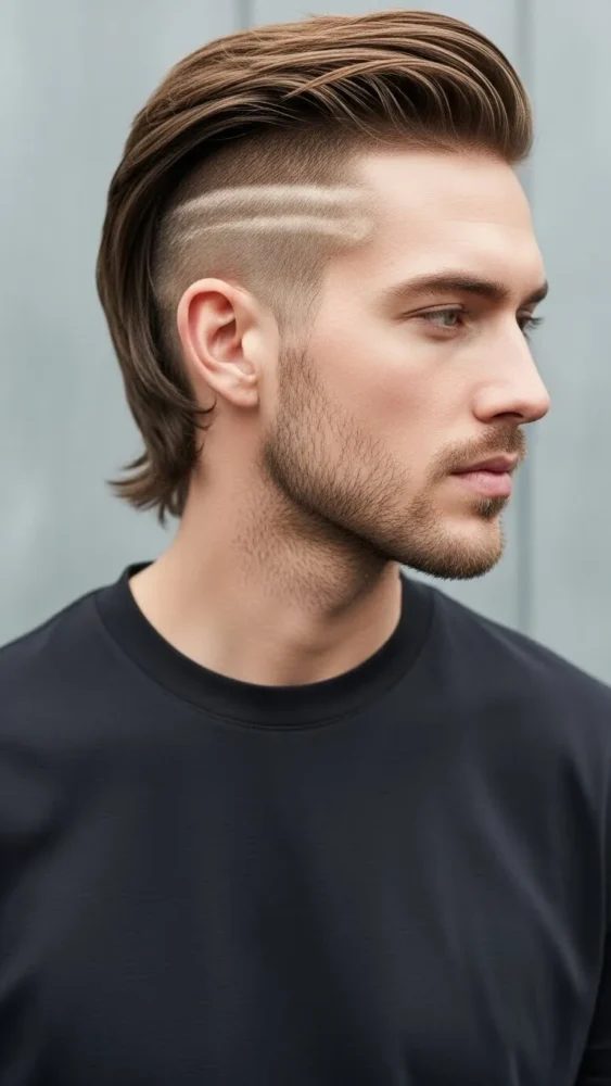 Bold and edgy, this men’s long haircut contrasts shaved sides with dramatic length on top.