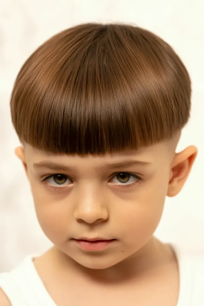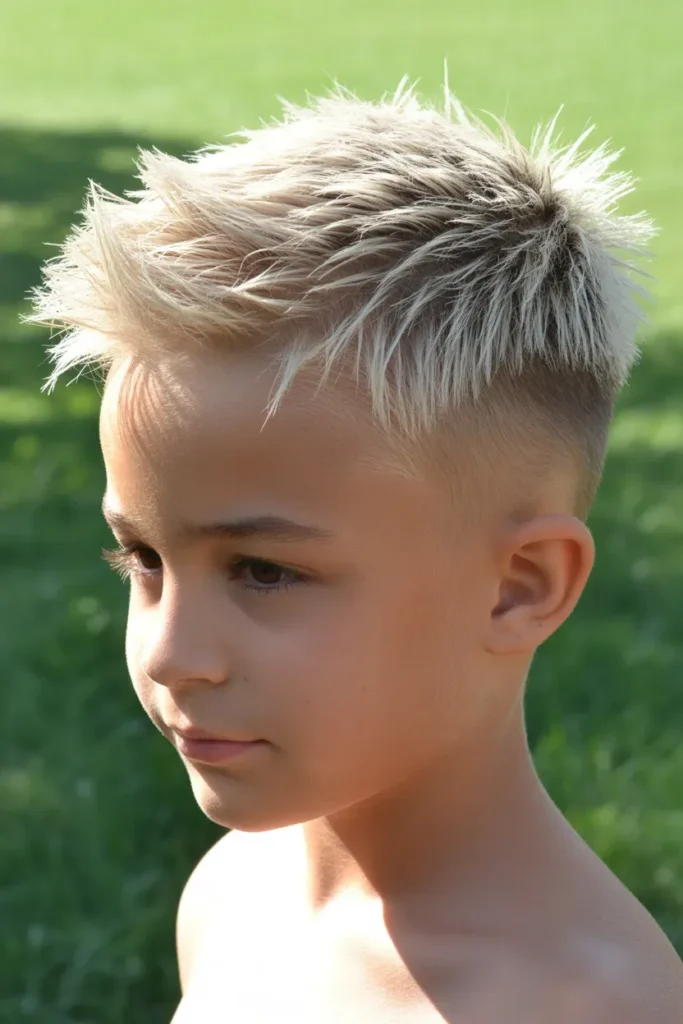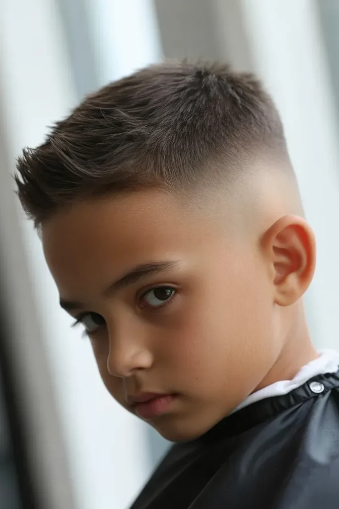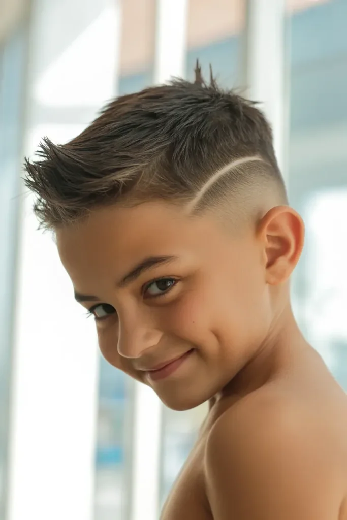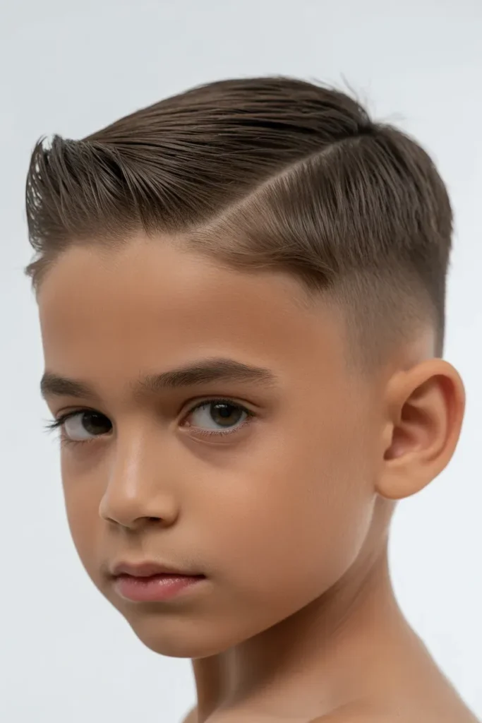 It’s simple, stylish, and easy to maintain. This haircut is ideal for boys who prefer a structured and bold silhouette.