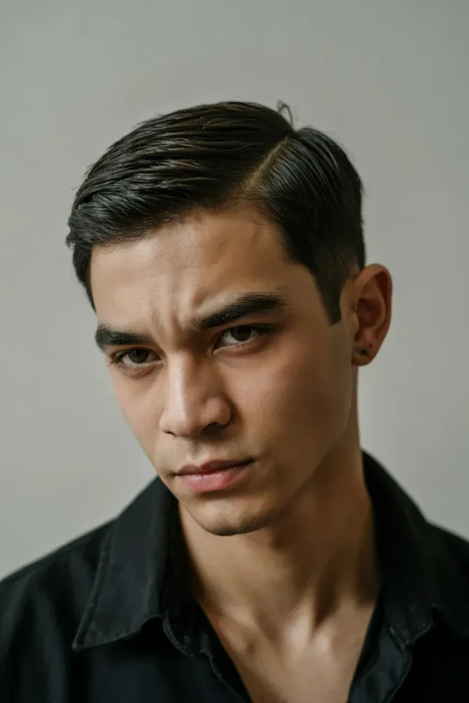 This style creates contrast that draws attention upward, making the face appear sharper and more defined.