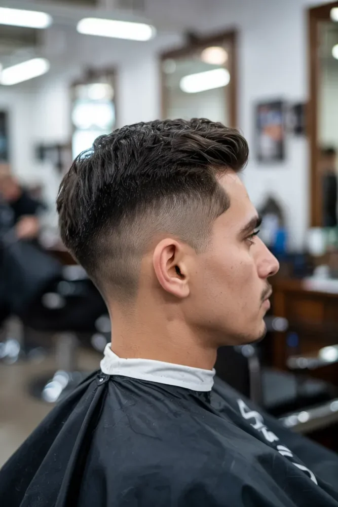 Whether you prefer short, textured, curly, or longer hair on top, this fade adapts effortlessly.