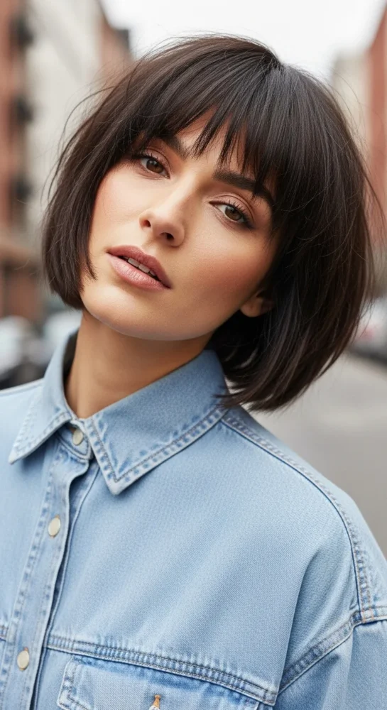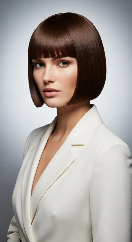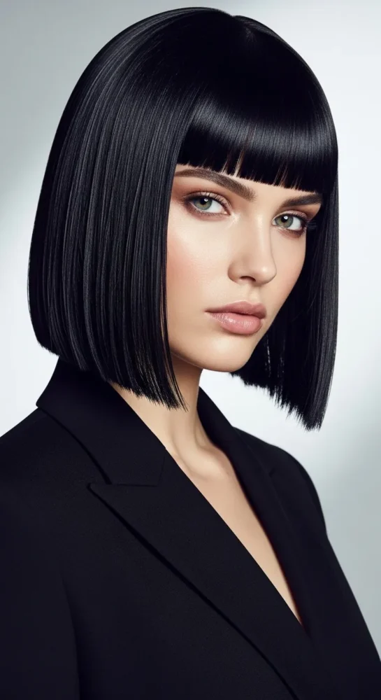 This timeless bob sits at the jawline with clean, blunt bangs that highlight the eyes. It’s polished, confident, and ideal for women who love a sharp, modern look that works for both office and evening wear.