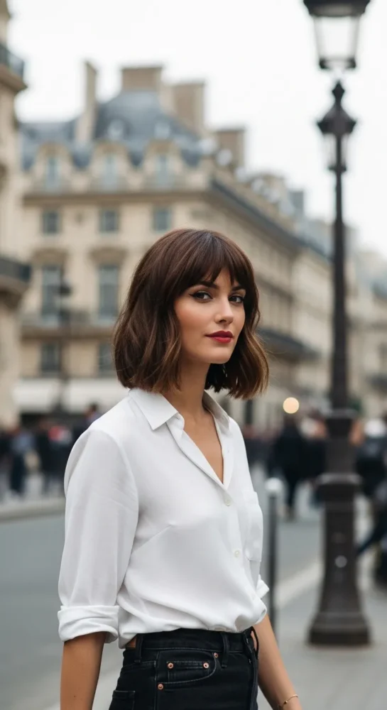Short, chic, and undeniably stylish, the French bob pairs a jaw-length cut with tiny micro bangs. It’s bold yet feminine and works best with confident styling.