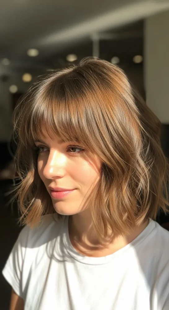 A shaggy bob adds texture and movement, while wispy bangs keep the style light and youthful. Perfect for women who want an effortless, undone vibe that still feels intentional