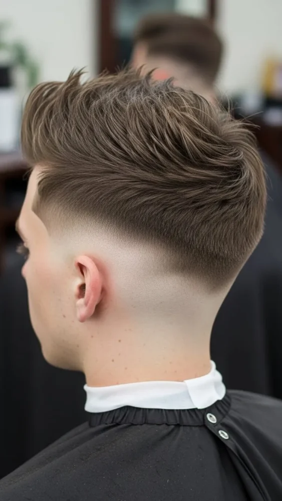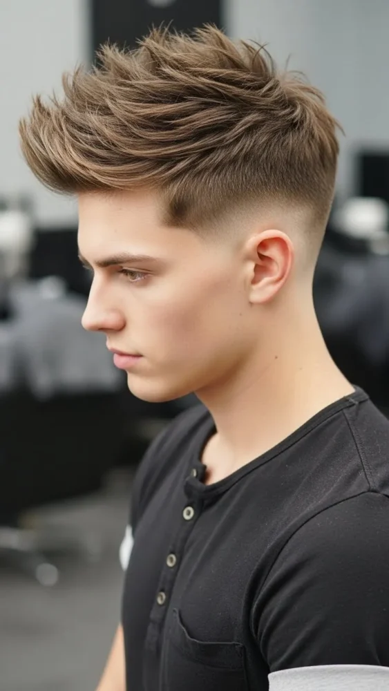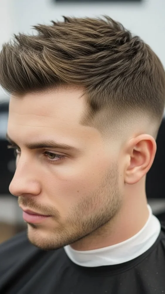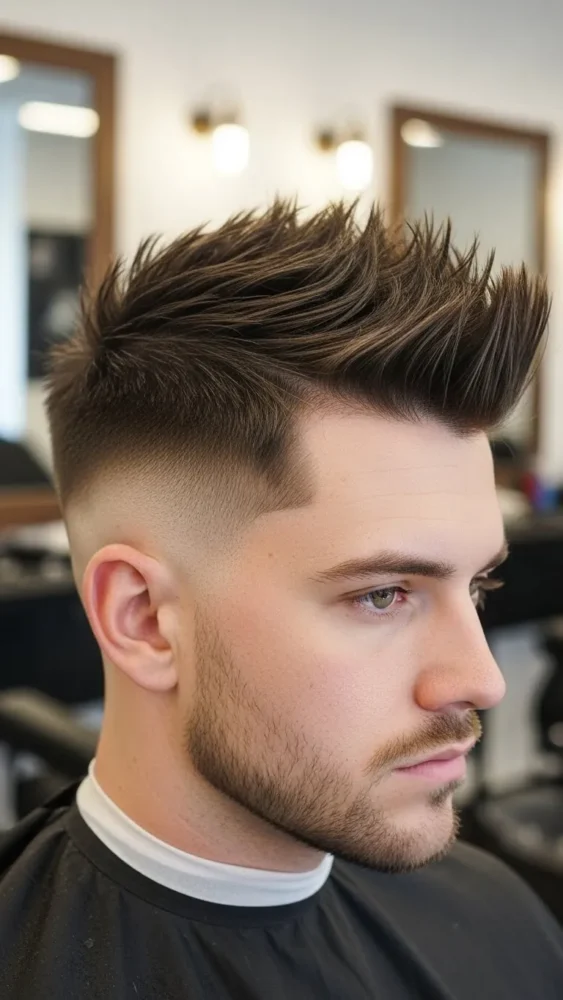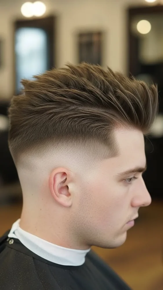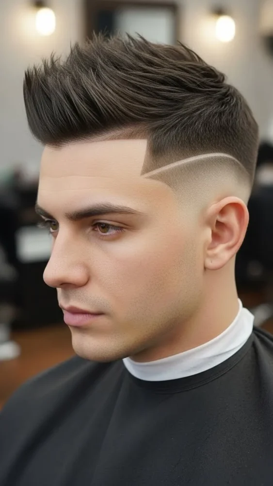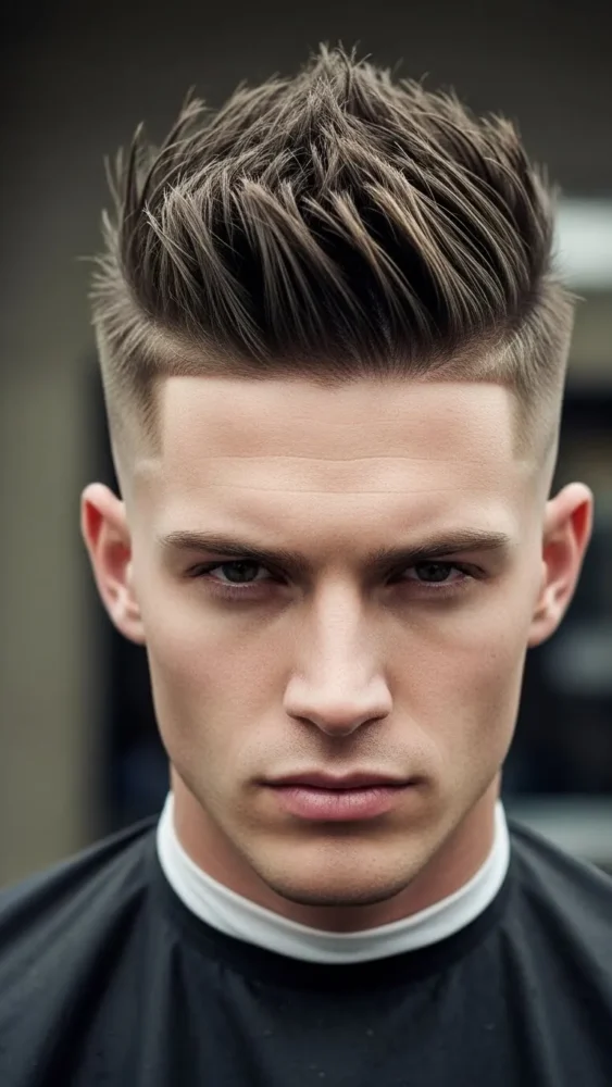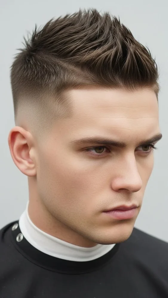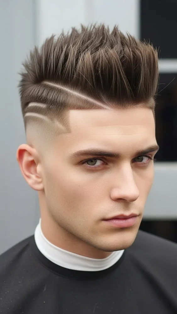 This ultra-clean haircut creates a striking contrast between the skin fade and the textured spikes on top. It’s bold and barbershop-fresh.