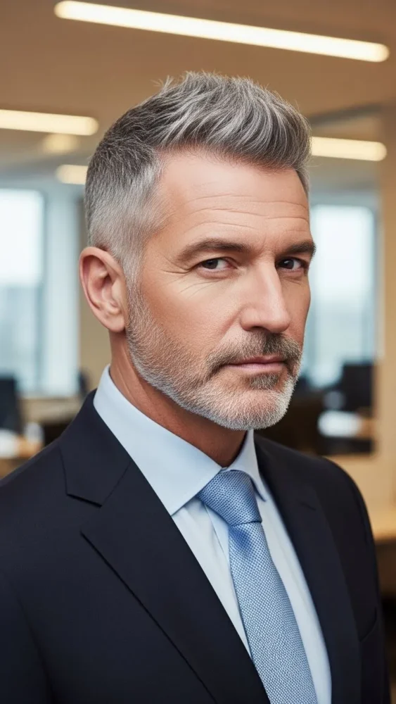 Spiky hair isn’t just for younger guys. This refined version keeps spikes subtle and clean for a mature, confident look.