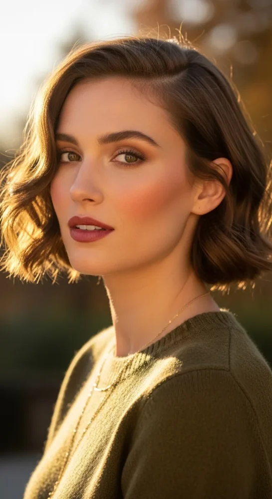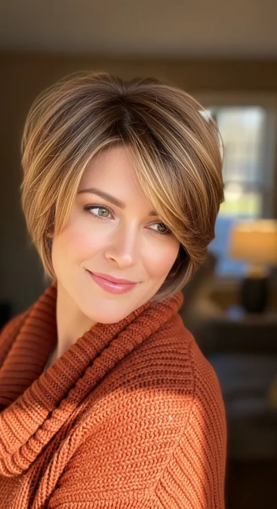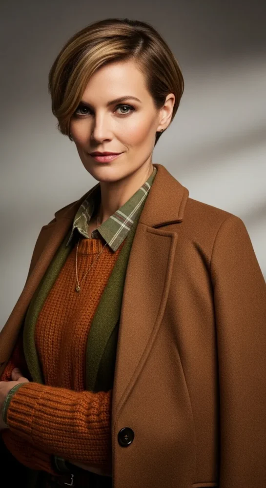 A soft pixie with gentle layers adds lift and definition without feeling harsh. It’s flattering for fine hair and highlights cheekbones beautifully, especially in cooler fall light.
