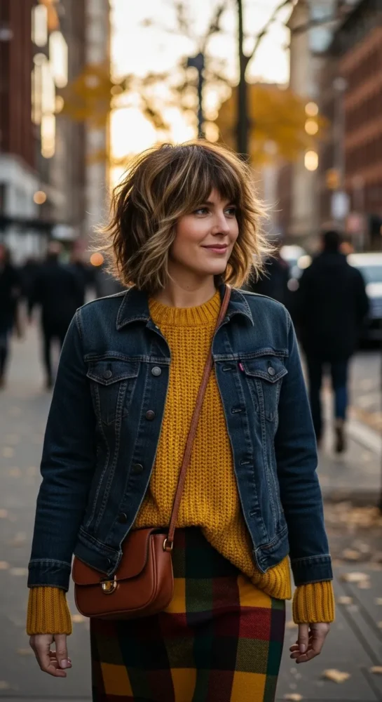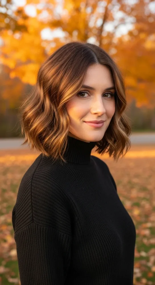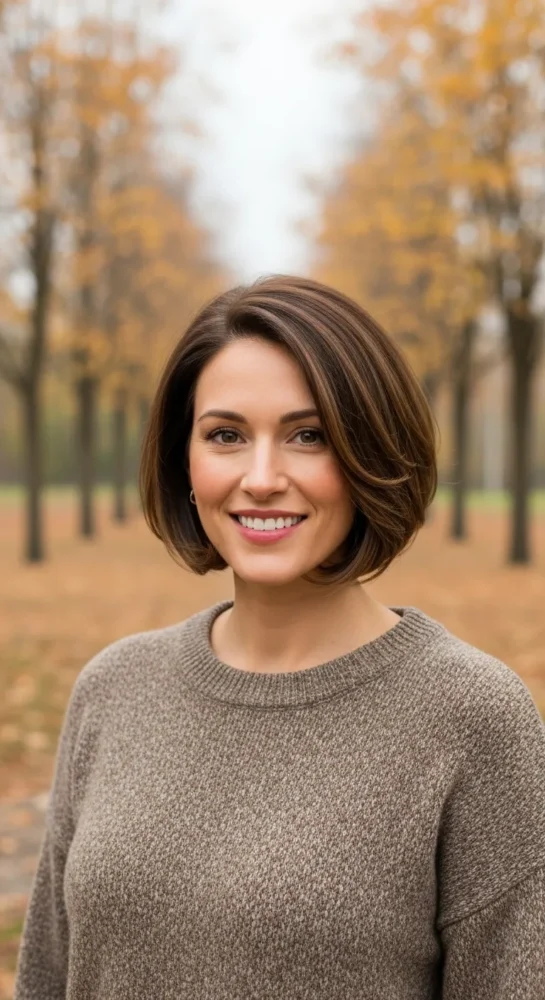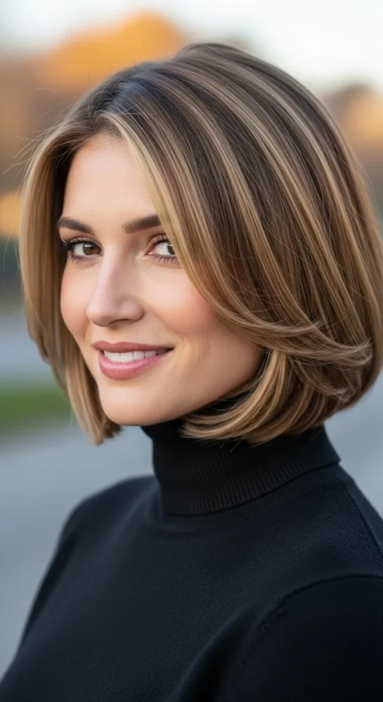 A chin-length bob is effortlessly elegant and works at any age. It frames the face beautifully and pairs well with fall layers and coats. Wear it sleek or softly tousled depending on your mood and lifestyle.